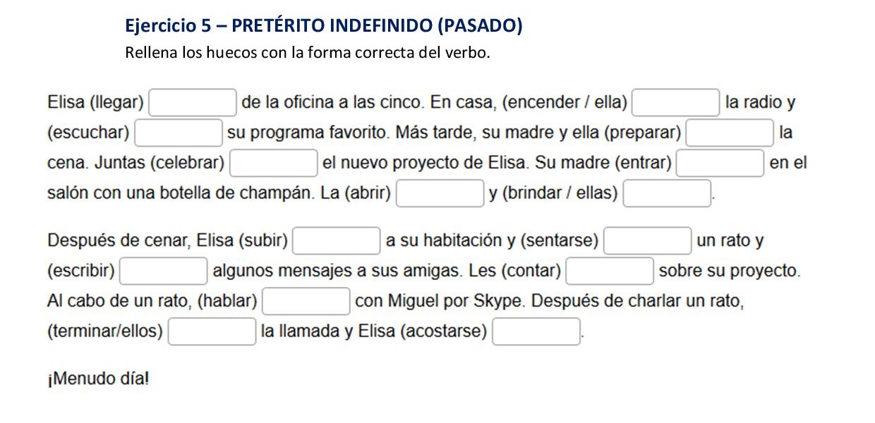 NIVEL 1. Actividad 9: 5 de junio de 2020 EJERCICIO 1 EJERCICIO 2 Audio del ejercicio 2 https://ojala.itakaescolapios.org/wp-content/uploads/2020/06/Audio-2.mp3 EJERCICIO 3 EJERCICIO 4 EJERCICIO 5